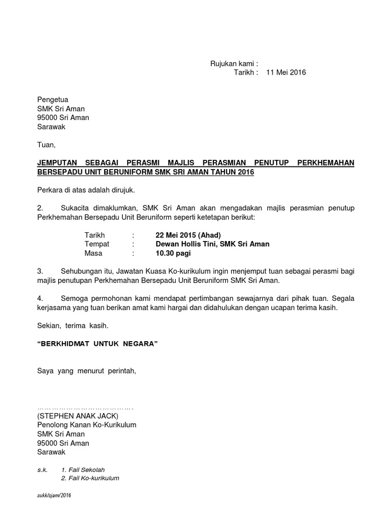 Surat Jemputan Vip Untuk Perasmian Pdf