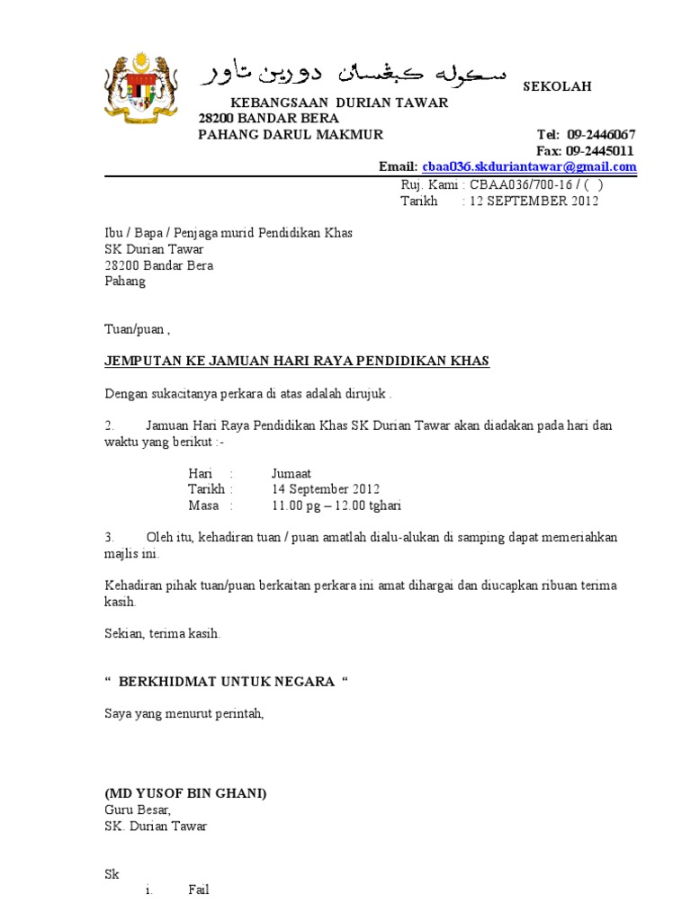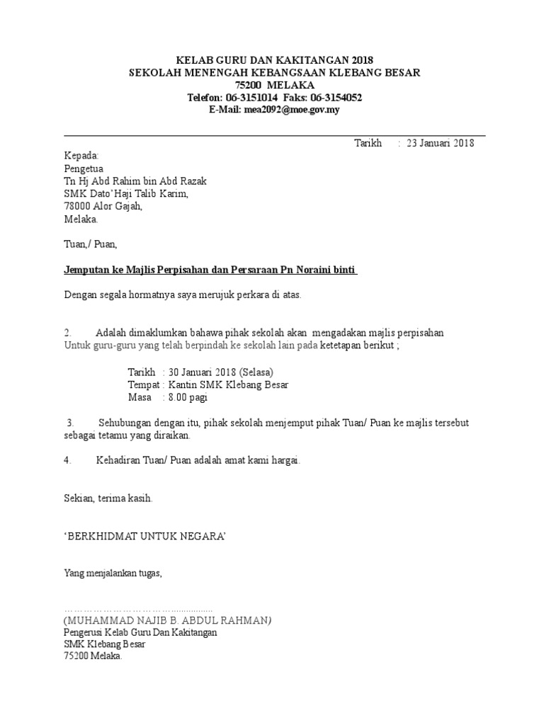 Surat Jemputan Majlis Perpisahan Pdf